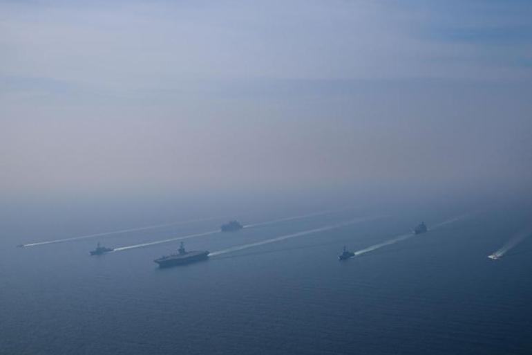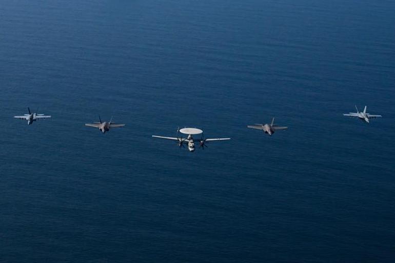 Bu sırada 9. Uçak Gemisi Hava Kanadı’na bağlı uçaklar da grubun üzerinde uçuş gerçekleştirdi" denildi. Açıklamanın sonunda, "Güç yoluyla barış" ifadeleri yer aldı.